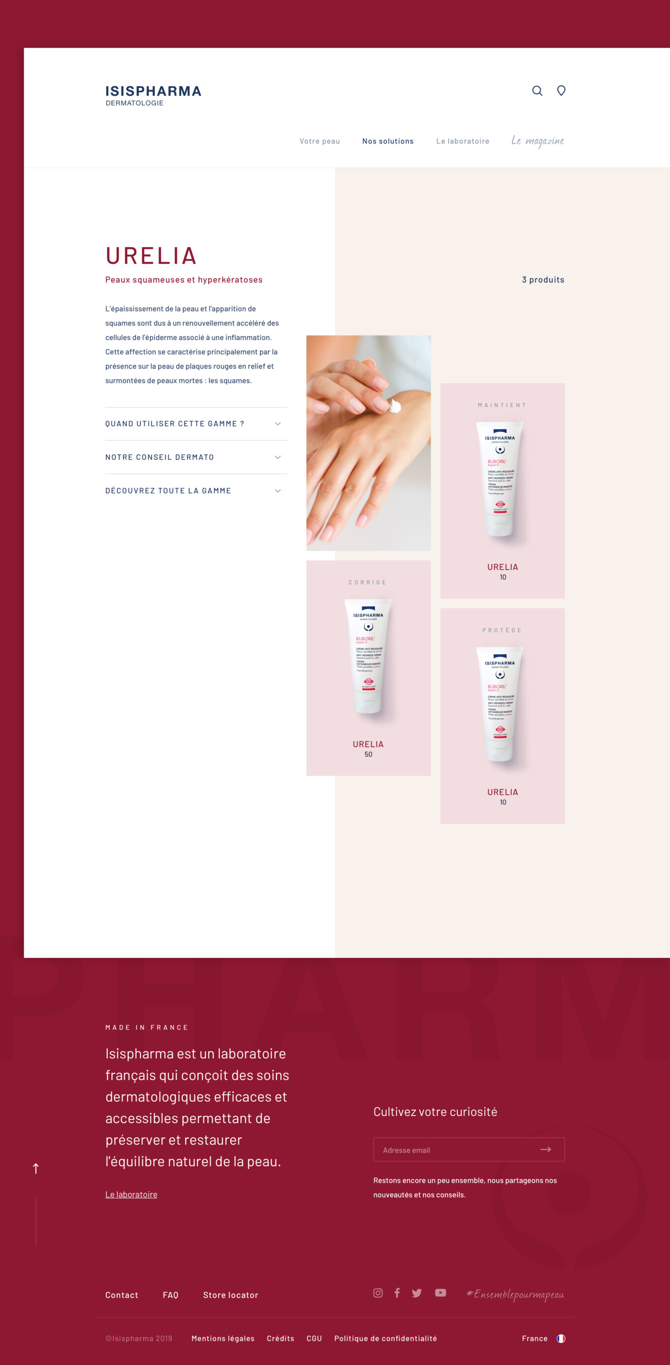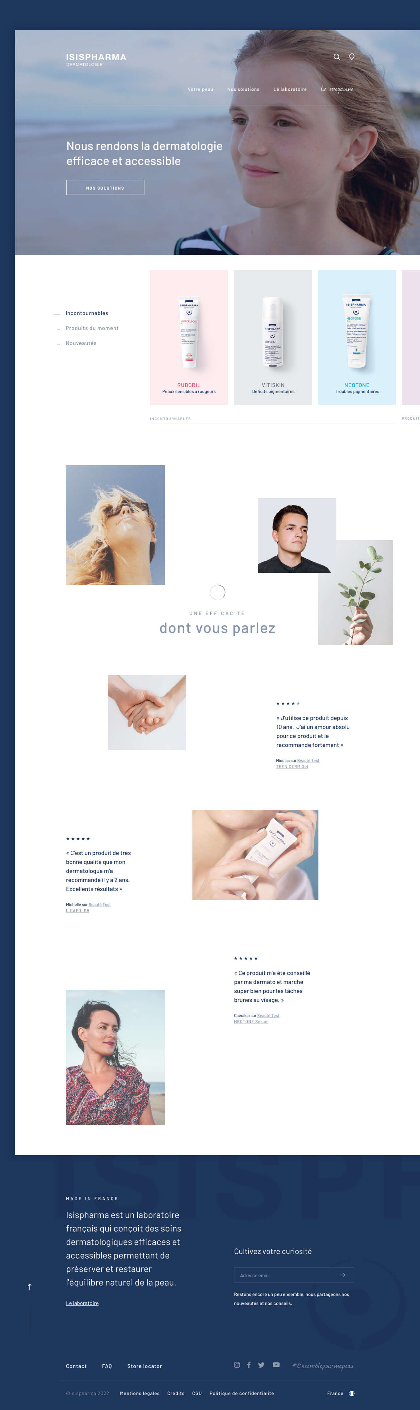 Isispharma est un laboratoire dermatologique Français spécialisé dans le dérèglement cutané. Depuis plus de 30 ans, Isispharma conçoit des soins qui préservent et restaurent l’équilibre naturel de la peau.